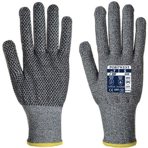 Handschoen Sabel-Dot A640 Portwest, Materiƫle coating: PVC, Coating oppervlakte: Palm, Handschoen maat: 9, Kleur: Grijs, Snijbescherming ISO 13997: D, Handschoenmeter: 13, Gebruik: Snijbestendige handschoen, Eco-label - Oeko-Tex Standard 100: Oeko-Tex Standard 100, 20.HBD.26244, Hohenstein HTTI, Aantal paar: 1, Recyclebare verpakking: Ja - 100%, Eco-verantwoordelijke aanpak: ja, Model: Puntige sabel, Type: Handschoen