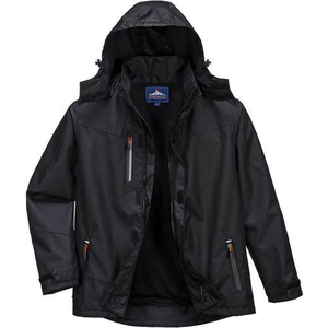 Jack Outcoach S555 Portwest, Materiaal: Polyester, Maat: S, Kleur: Zwart, Model: Coach, Eco-label - Oeko-Tex Standard 100: Oeko-Tex Standard 100, 20.HBD.26244, Hohenstein HTTI, Materiaal: 100% polyester, Recyclebare verpakking: Ja - 100%, Eco-verantwoordelijke aanpak: ja, Geslacht: Unisex