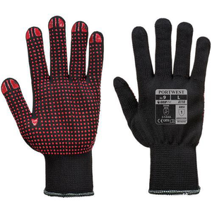 Handschoen Nylon Polkadot A110 Zwart/rood Portwest, Materiaal: Polyester, Handschoen maat: 9, Kleur: Zwart, Model: Polka Picots PVC, Eco-label - Oeko-Tex Standard 100: Oeko-Tex Standard 100, 20.HBD.26244, Hohenstein HTTI, Recyclebare verpakking: Ja - 100%, Eco-verantwoordelijke aanpak: ja