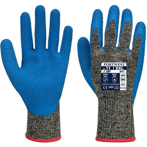 Handschoen Snijbestendig Aramide/Latex A611 Portwest, Materiƫle coating: Latex, Coating oppervlakte: Palm, Handschoen maat: 8, Kleur: Zwart/blauw, Snijbescherming ISO 13997: D, Handschoenmeter: 10, Gebruik: Snijbestendige handschoen, Eco-label - Oeko-Tex Standard 100: Oeko-Tex Standard 100, 20.HBD.26244, Hohenstein HTTI, Aantal paar: 1, Recyclebare verpakking: Ja - 100%, Eco-verantwoordelijke aanpak: ja, Model: HR, Type: Handschoen