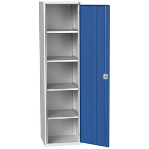 Hoge draaideurkast Verso 525x550x2000 mm, Max. belasting: 1000 kg, Materiaal: Staal, Totale hoogte: 2000 mm, Totale breedte: 525 mm, Totale diepte: 525 mm, Frame kleur: Grijs, Lade kleur: Blauw, Kleur deur: Blauw, Aantal deuren: 2, Aantal legborden: 4, RAL: 5010 7035, Geleverd gemonteerd: ja, Max. belasting per lade: 75 kg, Recyclebare verpakking: Ja - 100%, Gerecyclede verpakkingen: 93 %, Type nr.: 16926067.11