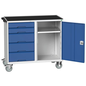 Verrijdbare Combikast Verso, Totale hoogte: 965 mm, Aantal laden: 5, Totale breedte: 1050 mm, Totale diepte: 550 mm, Kleur: Blauw, Deurhoogte: 725 mm, Totale hoogte lade: 2 x 100 ; 3 x 175 mm, Kleur ombouw: Lichtgrijs, Max. belasting per lade: 50 kg, Max. belasting: 300 kg, Aantal deuren: 1, RAL: 5010, Zwenkwiel Ø: 125 mm, Max. belasting per legbord: 75 kg, Special Covid-19: nee, Aantal legborden: 1, Aantal zwenkwielen: 4, Recyclebare verpakking: Ja - 100%, Gerecyclede verpakkingen: 93 %, Gewicht: 92.03 kg, Type nr.: 16927122.11, Lade kleur: Blauw, Kleur deur: Blauw