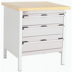 Werkbank beuken Cubio, Totale hoogte: 840 mm, Totale breedte: 750 mm, Werkbank blad materiaal: Beuk multiplex, Breedte: 750 mm, Diepte: 750 mm, Totale diepte: 750 mm, Frame kleur: Lichtgrijs, Hoogte: 840 mm, Werkhoogte: 840 mm, Dikte tafelblad: 40 mm, Aantal laden: 3, Aantal legborden: 0, Hoogte lade: 2 x 150 ; 1 x 200 mm, Kleur: Lichtgrijs, Lade kleur: Lichtgrijs, RAL: 7035, Max. belasting lade: 50 kg, Special Covid-19: nee, Recyclebare verpakking: Ja - 100%, Gerecyclede verpakkingen: 93 %, Gewicht: 75.73 kg, Diepte tafelblad: 750 mm