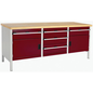 Werkbank beuken Cubio, Totale hoogte: 840 mm, Totale breedte: 2000 mm, Werkbank blad materiaal: Beuk multiplex, Breedte: 2000 mm, Diepte: 750 mm, Totale diepte: 750 mm, Frame kleur: Lichtgrijs, Hoogte: 840 mm, Werkhoogte: 840 mm, Dikte tafelblad: 40 mm, Aantal laden: 5, Aantal legborden: 0, Hoogte lade: 4x 125 ; 1x 175 mm, Aantal deuren: 2, Kleur: Rood, Kleur deur: Rood, Lade kleur: Rood, RAL: 3004, Max. belasting lade: 75 kg, Special Covid-19: nee, Recyclebare verpakking: Ja - 100%, Gerecyclede verpakkingen: 93 %, Gewicht: 161.56 kg, Diepte tafelblad: 750 mm