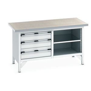 Werkbank linoleum Cubio - 3 laden - B 1500 mm - Bott