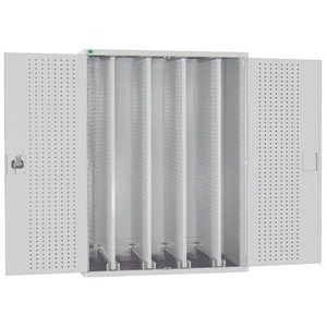 Werkplaatskast voor het overzichtelijk opbergen van uw gereedschap. Voorzien van perfogaten en sleufpanelen. Sluit de deuren veilig af met de driepuntssluiting en het cilinderslot.