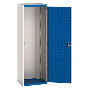 Kast Cubio geperforeerde deur, Max. belasting: 1500 kg, Lean Management: nee, Totale hoogte: 2000 mm, Aantal laden: 0, Totale breedte: 650 mm, Aantal legborden: 0, Totale diepte: 525 mm, Frame kleur: Lichtgrijs, Max. belasting per legbord: 100 kg, Met lade: nee, Geleverd gemonteerd: ja, Materiaal: Staal, Kleur: Blauw