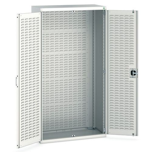 Werkplaatskast voor het overzichtelijk opbergen van uw gereedschap. Voorzien van perfogaten en sleufpanelen. Sluit de deuren veilig af met de driepuntssluiting en het cilinderslot.