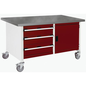 Verrijdbaar werkplaatsbank monobloc Cubio, Totale hoogte: 840 mm, Aantal laden: 3, Totale breedte: 1500 mm, Totale diepte: 750 mm, Kleur: Rood, Deurhoogte: 475 mm, Dikte tafelblad: 40 mm, Totale hoogte lade: 2 x 150 ; 1 x 200 mm, Kleur ombouw: Lichtgrijs, Max. belasting per lade: 75 kg, Max. belasting: 300 kg, Aantal deuren: 1, RAL: 3004, Zwenkwiel Ø: 125 mm, Max. belasting per legbord: 100 kg, Special Covid-19: nee, Aantal legborden: 1, Aantal zwenkwielen: 4, Recyclebare verpakking: Ja - 100%, Gerecyclede verpakkingen: 93 %, Werkbank blad materiaal: Linoleum, Gewicht: 110.9 kg, Type nr.: 41002102.24V, Lade kleur: Rood, Kleur deur: Rood