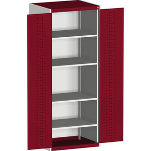 Kast Cubio deuren Perfo, Lean Management: ja, Totale hoogte: 2000 mm, Aantal laden: 0, Totale breedte: 650 mm, Aantal legborden: 4, Totale diepte: 650 mm, Frame kleur: Lichtgrijs, Type nr.: 40019125.24V, Type: Lage kast, Model: Cubio, Kleur deur: Rood, Max. belasting per legbord: 100 kg, Geleverd gemonteerd: ja, Materiaal: Staal, Recyclebare verpakking: Ja - 100%, Gerecyclede verpakkingen: 93 %, Aantal deuren: 2, Type sluiting: Met sleutel