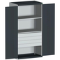 Gecombineerde zware kast Cubio, Lean Management: ja, Totale hoogte: 2000 mm, Aantal laden: 4, Totale breedte: 1050 mm, Aantal legborden: 2, Totale diepte: 650 mm, Hoogte lade: 4 x 125 mm, Kleur deur: Antraciet, Lade kleur: Lichtgrijs, Max. belasting per legbord: 100 kg, Geleverd gemonteerd: ja, Recyclebare verpakking: Ja - 100%, Gerecyclede verpakkingen: 93 %, Aantal deuren: 2