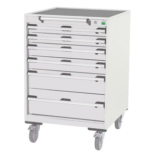 Mobiele ladekast Cubio, Totale hoogte: 985 mm, Aantal laden: 6, Totale breedte: 650 mm, Totale diepte: 650 mm, Kleur: Lichtgrijs, Totale hoogte lade: 2 x 75 ; 2 x 100 ; 1 x 150 ; 1 x 200 mm, Kleur ombouw: Lichtgrijs, Max. belasting per lade: 50 kg, Max. belasting: 300 kg, RAL: 7035, Zwenkwiel Ø: 125 mm, Special Covid-19: nee, Aantal legborden: 0, Aantal zwenkwielen: 4, Recyclebare verpakking: Ja - 100%, Gerecyclede verpakkingen: 93 %, Gewicht: 93 kg, Type nr.: 40402035.16V, Lade kleur: Lichtgrijs