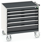 Verrijdbare werkplaatsladekast Cubio, Totale hoogte: 785 mm, Aantal laden: 5, Totale breedte: 800 mm, Totale diepte: 650 mm, Kleur: Antraciet, Totale hoogte lade: 2 x 75 ; 2 x 100 ; 1 x 150 mm, Kleur ombouw: Lichtgrijs, Max. belasting per lade: 50 kg, Max. belasting: 600 kg, RAL: 7016, Zwenkwiel Ø: 125 mm, Special Covid-19: nee, Aantal legborden: 0, Aantal zwenkwielen: 4, Recyclebare verpakking: Ja - 100%, Gerecyclede verpakkingen: 93 %, Gewicht: 124.51 kg, Type nr.: 40402107.19V, Lade kleur: Antraciet