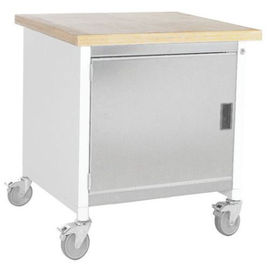 Verrijdbaar werkplaatsbank monobloc Cubio, Totale hoogte: 840 mm, Aantal laden: 0, Totale breedte: 750 mm, Totale diepte: 750 mm, Kleur: Lichtgrijs, Deurhoogte: 475 mm, Dikte tafelblad: 40 mm, Kleur ombouw: Lichtgrijs, Max. belasting: 300 kg, Aantal deuren: 1, RAL: 7035, Zwenkwiel Ø: 125 mm, Max. belasting per legbord: 100 kg, Special Covid-19: nee, Aantal legborden: 1, Aantal zwenkwielen: 4, Recyclebare verpakking: Ja - 100%, Gerecyclede verpakkingen: 93 %, Werkbank blad materiaal: Beuk multiplex, Gewicht: 59.98 kg, Type nr.: 41002085.16V, Kleur deur: Lichtgrijs