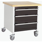 Verrijdbaar werkplaatsbank monobloc Cubio, Totale hoogte: 840 mm, Aantal laden: 3, Totale breedte: 750 mm, Totale diepte: 750 mm, Kleur: Antraciet, Dikte tafelblad: 40 mm, Totale hoogte lade: 2 x 150 ; 1 x 200 mm, Kleur ombouw: Lichtgrijs, Max. belasting per lade: 75 kg, Max. belasting: 300 kg, RAL: 7016 7035, Zwenkwiel Ø: 125 mm, Special Covid-19: nee, Aantal legborden: 0, Aantal zwenkwielen: 4, Recyclebare verpakking: Ja - 100%, Gerecyclede verpakkingen: 93 %, Werkbank blad materiaal: Beuk multiplex, Gewicht: 73.65 kg, Type nr.: 41002091.19V, Lade kleur: Antraciet