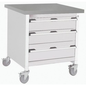 Verrijdbaar werkplaatsbank monobloc Cubio, Totale hoogte: 840 mm, Aantal laden: 3, Totale breedte: 750 mm, Totale diepte: 750 mm, Kleur: Lichtgrijs, Dikte tafelblad: 40 mm, Totale hoogte lade: 2 x 150 ; 1 x 200 mm, Kleur ombouw: Lichtgrijs, Max. belasting per lade: 75 kg, Max. belasting: 300 kg, RAL: 7035, Zwenkwiel Ø: 125 mm, Special Covid-19: nee, Aantal legborden: 0, Aantal zwenkwielen: 4, Recyclebare verpakking: Ja - 100%, Gerecyclede verpakkingen: 93 %, Werkbank blad materiaal: Linoleum, Gewicht: 74.33 kg, Type nr.: 41002093.16V, Lade kleur: Lichtgrijs