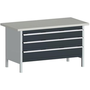 Werkbank linoleum Cubio, Totale hoogte: 840 mm, Totale breedte: 1500 mm, Werkbank blad materiaal: Linoleum, Breedte: 1500 mm, Diepte: 750 mm, Totale diepte: 750 mm, Frame kleur: Lichtgrijs, Hoogte: 840 mm, Werkhoogte: 840 mm, Dikte tafelblad: 40 mm, Aantal laden: 3, Aantal legborden: 0, Hoogte lade: 2 x 150 ; 1 x 200 mm, Kleur: Antraciet, Lade kleur: Antraciet, RAL: 7016, Max. belasting lade: 75 kg, Special Covid-19: nee, Recyclebare verpakking: Ja - 100%, Gerecyclede verpakkingen: 93 %, Gewicht: 119.25 kg, Diepte tafelblad: 750 mm