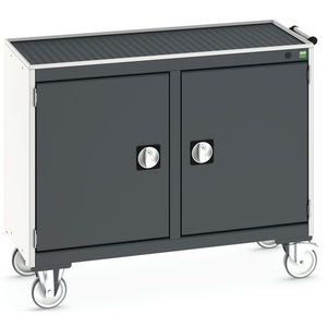 Werktafel voor onderhoud Cubio, Totale hoogte: 885 mm, Aantal laden: 0, Totale breedte: 1050 mm, Totale diepte: 525 mm, Kleur: Antraciet, Deurhoogte: 600 mm, Kleur ombouw: Lichtgrijs, Max. belasting: 600 kg, Aantal deuren: 2, RAL: 7016, Zwenkwiel Ø: 125 mm, Max. belasting per legbord: 100 kg, Special Covid-19: nee, Aantal legborden: 2, Aantal zwenkwielen: 4, Recyclebare verpakking: Ja - 100%, Gerecyclede verpakkingen: 93 %, Gewicht: 80.48 kg, Type nr.: 41006003.19V, Kleur deur: Antraciet