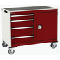 Werktafel voor onderhoud Cubio, Totale hoogte: 885 mm, Aantal laden: 4, Totale breedte: 1050 mm, Totale diepte: 525 mm, Kleur: Rood, Deurhoogte: 600 mm, Totale hoogte lade: 1 x 100 ; 2 x 150 ; 1 x 200 mm, Kleur ombouw: Lichtgrijs, Max. belasting per lade: 50 kg, Max. belasting: 600 kg, Aantal deuren: 1, RAL: 3004, Zwenkwiel Ø: 125 mm, Special Covid-19: nee, Aantal legborden: 0, Aantal zwenkwielen: 4, Recyclebare verpakking: Ja - 100%, Gerecyclede verpakkingen: 93 %, Gewicht: 104.4 kg, Type nr.: 41006006.24V, Lade kleur: Rood, Kleur deur: Rood