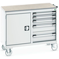 Werktafel voor onderhoud Cubio, Totale hoogte: 890 mm, Aantal laden: 5, Totale breedte: 1050 mm, Totale diepte: 525 mm, Kleur: Lichtgrijs, Deurhoogte: 600 mm, Dikte tafelblad: 20 mm, Totale hoogte lade: 2 x 75 ; 1 x 100 ; 1 x 150 ; 1 x 200 mm, Kleur ombouw: Lichtgrijs, Max. belasting per lade: 50 kg, Max. belasting: 600 kg, Aantal deuren: 1, RAL: 7035, Zwenkwiel Ø: 125 mm, Special Covid-19: nee, Aantal legborden: 0, Aantal zwenkwielen: 4, Recyclebare verpakking: Ja - 100%, Gerecyclede verpakkingen: 93 %, Gewicht: 98.02 kg, Type nr.: 41006008.16V, Lade kleur: Lichtgrijs, Kleur deur: Lichtgrijs