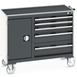 Werktafel voor onderhoud Cubio, Totale hoogte: 885 mm, Aantal laden: 5, Totale breedte: 1050 mm, Totale diepte: 525 mm, Kleur: Antraciet, Deurhoogte: 600 mm, Totale hoogte lade: 2 x 75 ; 1 x 100 ; 1 x 150 ; 1 x 200 mm, Kleur ombouw: Lichtgrijs, Max. belasting per lade: 50 kg, Max. belasting: 600 kg, Aantal deuren: 1, RAL: 7016, Zwenkwiel Ø: 125 mm, Special Covid-19: nee, Aantal legborden: 0, Aantal zwenkwielen: 4, Recyclebare verpakking: Ja - 100%, Gerecyclede verpakkingen: 93 %, Gewicht: 101.86 kg, Type nr.: 41006015.19V, Lade kleur: Antraciet, Kleur deur: Antraciet