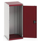 Kast Cubio met geperforeerde deur, Max. belasting: 1500 kg, Lean Management: nee, Totale hoogte: 1200 mm, Aantal laden: 0, Totale breedte: 525 mm, Aantal legborden: 0, Totale diepte: 650 mm, Frame kleur: Lichtgrijs, Kleur deur: Rood, Max. belasting per legbord: 100 kg, Gewicht: 41 kg, Met lade: nee, Geleverd gemonteerd: ja, Aantal deuren: 1