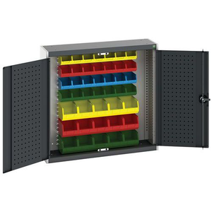 Wandkast Perfo Cubio, Lean Management: ja, Totale hoogte: 1000 mm, Totale breedte: 1050 mm, Aantal legborden: 0, Totale diepte: 325 mm, Kleur deur: Antraciet, Aantal bakken: 43, Geleverd gemonteerd: ja, Recyclebare verpakking: Ja - 100%, Gerecyclede verpakkingen: 93 %
