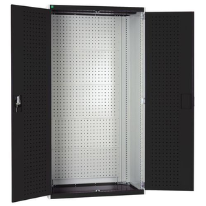 Werkplaatskast voor het overzichtelijk opbergen van uw gereedschap. Voorzien van perfogaten en sleufpanelen. Sluit de deuren veilig af met de driepuntssluiting en het cilinderslot.