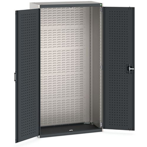 Werkplaatskast voor het overzichtelijk opbergen van uw gereedschap. Voorzien van perfogaten en sleufpanelen. Sluit de deuren veilig af met de driepuntssluiting en het cilinderslot.