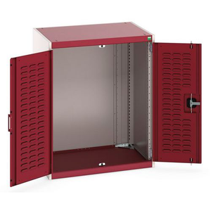 Kast Cubio met perfopaneel, Max. belasting: 1500 kg, Lean Management: nee, Totale hoogte: 1000 mm, Aantal laden: 0, Totale breedte: 800 mm, Aantal legborden: 0, Totale diepte: 650 mm, Frame kleur: Lichtgrijs, Kleur deur: Rood, Max. belasting per legbord: 100 kg, Gewicht: 56 kg, Met lade: nee, Geleverd gemonteerd: ja, Materiaal: Staal, Aantal deuren: 2