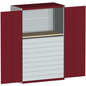 Kast zware mini atelier Cubio, Lean Management: ja, Totale hoogte: 2000 mm, Aantal laden: 9, Totale breedte: 1300 mm, Aantal legborden: 0, Totale diepte: 650 mm, Kleur deur: Rood, Geleverd gemonteerd: ja, Recyclebare verpakking: Ja - 100%, Gerecyclede verpakkingen: 93 %, Aantal deuren: 2