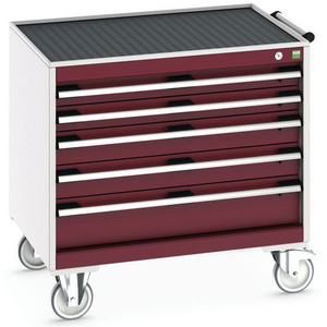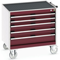 Verrijdbare werkplaatsladekast Cubio, Totale hoogte: 785 mm, Aantal laden: 5, Totale breedte: 800 mm, Totale diepte: 650 mm, Kleur: Rood, Totale hoogte lade: 2 x 75 ; 2 x 100 ; 1 x 150 mm, Kleur ombouw: Lichtgrijs, Max. belasting per lade: 50 kg, Max. belasting: 600 kg, RAL: 3004, Zwenkwiel Ø: 125 mm, Special Covid-19: nee, Aantal legborden: 0, Aantal zwenkwielen: 4, Recyclebare verpakking: Ja - 100%, Gerecyclede verpakkingen: 93 %, Gewicht: 124.51 kg, Type nr.: 40402107.24V, Lade kleur: Rood
