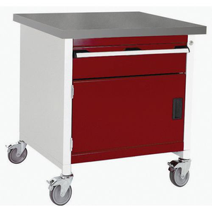 Verrijdbaar werkplaatsbank monobloc Cubio, Totale hoogte: 840 mm, Aantal laden: 1, Totale breedte: 750 mm, Totale diepte: 750 mm, Kleur: Rood, Deurhoogte: 350 mm, Dikte tafelblad: 40 mm, Totale hoogte lade: 1 x 150 mm, Kleur ombouw: Lichtgrijs, Max. belasting per lade: 75 kg, Max. belasting: 300 kg, Aantal deuren: 1, RAL: 3004, Zwenkwiel Ø: 125 mm, Special Covid-19: nee, Aantal legborden: 0, Aantal zwenkwielen: 4, Recyclebare verpakking: Ja - 100%, Gerecyclede verpakkingen: 93 %, Werkbank blad materiaal: Linoleum, Gewicht: 60.09 kg, Type nr.: 41002090.24V, Lade kleur: Rood, Kleur deur: Rood