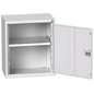 Wandkast Verso, Materiaal: Staal, Totale hoogte: 600 mm, Totale breedte: 525 mm, Aantal legborden: 1, Totale diepte: 350 mm, Frame kleur: Lichtgrijs, Kleur deur: Lichtgrijs, Gewicht: 17.34 kg, Max. belasting per legbord: 75 kg, Aantal deuren: 1, Kleur: Lichtgrijs, RAL: 7035, Met lade: nee, Geleverd gemonteerd: ja, Recyclebare verpakking: Ja - 100%, Gerecyclede verpakkingen: 93 %, Deurmateriaal: Staal, Type nr.: 16926002.16, Frame materiaal: Staal, Deur RAL: 7035