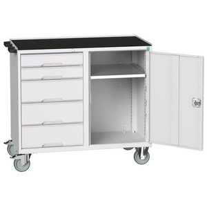 Verrijdbare Combikast Verso, Totale hoogte: 965 mm, Aantal laden: 5, Totale breedte: 1050 mm, Totale diepte: 550 mm, Kleur: Lichtgrijs, Deurhoogte: 725 mm, Totale hoogte lade: 2 x 100 ; 3 x 175 mm, Kleur ombouw: Lichtgrijs, Max. belasting per lade: 50 kg, Max. belasting: 300 kg, Aantal deuren: 1, RAL: 7035, Zwenkwiel Ø: 125 mm, Max. belasting per legbord: 75 kg, Special Covid-19: nee, Aantal legborden: 1, Aantal zwenkwielen: 4, Recyclebare verpakking: Ja - 100%, Gerecyclede verpakkingen: 93 %, Gewicht: 92.03 kg, Type nr.: 16927122.16, Lade kleur: Lichtgrijs, Kleur deur: Lichtgrijs