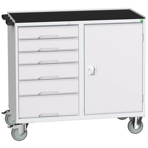 Verrijdbare Combikast Verso, Totale hoogte: 965 mm, Aantal laden: 6, Totale breedte: 1050 mm, Totale diepte: 550 mm, Kleur: Lichtgrijs, Deurhoogte: 725 mm, Totale hoogte lade: 3 x 100 ; 2 x 125 ; 1 x 175 mm, Kleur ombouw: Lichtgrijs, Max. belasting per lade: 50 kg, Max. belasting: 300 kg, Aantal deuren: 1, RAL: 7035, Zwenkwiel Ø: 125 mm, Max. belasting per legbord: 75 kg, Special Covid-19: nee, Aantal legborden: 1, Aantal zwenkwielen: 4, Recyclebare verpakking: Ja - 100%, Gerecyclede verpakkingen: 93 %, Gewicht: 95.32 kg, Type nr.: 16927125.16, Lade kleur: Lichtgrijs, Kleur deur: Lichtgrijs