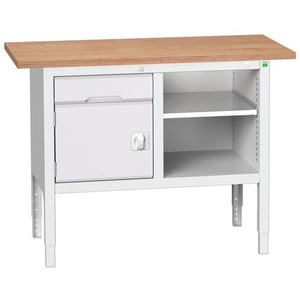 Werkbank monobloc Verso, Max. belasting: 800 kg, Totale hoogte: 930 mm, Totale breedte: 1250 mm, Werkbank blad materiaal: Beuk multiplex, Breedte: 1250 mm, Diepte: 600 mm, Totale diepte: 600 mm, Frame kleur: Lichtgrijs, Hoogte: 930 mm, Werkhoogte: 930 mm, Min. verstelbare hoogte: 830 mm, Max. verstelbare hoogte: 930 mm, Dikte tafelblad: 30 mm, Aantal laden: 1, Aantal legborden: 1, Hoogte lade: 1 x 125 mm, Aantal deuren: 1, Kleur: Lichtgrijs, Kleur deur: Lichtgrijs, Lade kleur: Lichtgrijs, RAL: 7035, Max. belasting lade: 75 kg, Special Covid-19: nee, Recyclebare verpakking: Ja - 100%, Gerecyclede verpakkingen: 93 %, Gewicht: 89.03 kg, Diepte tafelblad: 600 mm