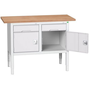 Werkbank monobloc Verso, Max. belasting: 800 kg, Totale hoogte: 930 mm, Totale breedte: 1250 mm, Werkbank blad materiaal: Beuk multiplex, Breedte: 1250 mm, Diepte: 600 mm, Totale diepte: 600 mm, Frame kleur: Lichtgrijs, Hoogte: 930 mm, Werkhoogte: 930 mm, Min. verstelbare hoogte: 830 mm, Max. verstelbare hoogte: 930 mm, Dikte tafelblad: 30 mm, Aantal laden: 2, Aantal legborden: 0, Hoogte lade: 2 x 125 mm, Aantal deuren: 2, Kleur: Lichtgrijs, Kleur deur: Lichtgrijs, Lade kleur: Lichtgrijs, RAL: 7035, Max. belasting lade: 75 kg, Special Covid-19: nee, Recyclebare verpakking: Ja - 100%, Gerecyclede verpakkingen: 93 %, Gewicht: 96.78 kg, Diepte tafelblad: 600 mm