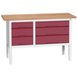 Werkbank monobloc Verso, Max. belasting: 800 kg, Totale hoogte: 930 mm, Totale breedte: 1500 mm, Werkbank blad materiaal: Beuk multiplex, Breedte: 1500 mm, Diepte: 600 mm, Totale diepte: 600 mm, Frame kleur: Lichtgrijs, Hoogte: 930 mm, Werkhoogte: 930 mm, Min. verstelbare hoogte: 830 mm, Max. verstelbare hoogte: 930 mm, Dikte tafelblad: 30 mm, Aantal laden: 6, Aantal legborden: 0, Hoogte lade: 2 x 125 ; 4 x 175 mm, Kleur: Rood, Lade kleur: Rood, RAL: 3004, Max. belasting lade: 75 kg, Special Covid-19: nee, Recyclebare verpakking: Ja - 100%, Gerecyclede verpakkingen: 93 %, Gewicht: 134.88 kg, Diepte tafelblad: 600 mm