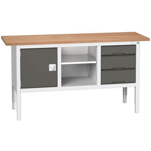 Werkbank monobloc Verso, Max. belasting: 800 kg, Totale hoogte: 930 mm, Totale breedte: 1750 mm, Werkbank blad materiaal: Beuk multiplex, Breedte: 1750 mm, Diepte: 600 mm, Totale diepte: 600 mm, Frame kleur: Lichtgrijs, Hoogte: 930 mm, Werkhoogte: 930 mm, Min. verstelbare hoogte: 830 mm, Max. verstelbare hoogte: 930 mm, Dikte tafelblad: 30 mm, Aantal laden: 3, Aantal legborden: 1, Hoogte lade: 1 x 125 ; 2 x 175 mm, Aantal deuren: 1, Kleur: Antraciet, Kleur deur: Antraciet, Lade kleur: Antraciet, RAL: 7016, Max. belasting lade: 75 kg, Special Covid-19: nee, Recyclebare verpakking: Ja - 100%, Gerecyclede verpakkingen: 93 %, Gewicht: 120.99 kg, Diepte tafelblad: 600 mm