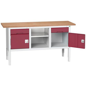 Werkbank monobloc Verso, Max. belasting: 800 kg, Totale hoogte: 930 mm, Totale breedte: 1750 mm, Werkbank blad materiaal: Beuk multiplex, Breedte: 1750 mm, Diepte: 600 mm, Totale diepte: 600 mm, Frame kleur: Lichtgrijs, Hoogte: 930 mm, Werkhoogte: 930 mm, Min. verstelbare hoogte: 830 mm, Max. verstelbare hoogte: 930 mm, Dikte tafelblad: 30 mm, Aantal laden: 2, Aantal legborden: 1, Hoogte lade: 2 x 125 mm, Aantal deuren: 2, Kleur: Rood, Kleur deur: Rood, Lade kleur: Rood, RAL: 3004, Max. belasting lade: 75 kg, Special Covid-19: nee, Recyclebare verpakking: Ja - 100%, Gerecyclede verpakkingen: 93 %, Gewicht: 114.06 kg, Diepte tafelblad: 600 mm