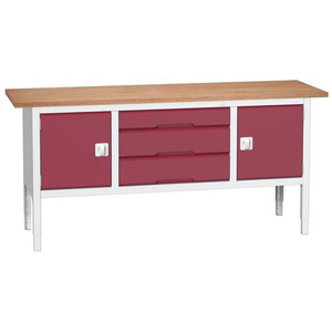 Werkbank monobloc Verso, Max. belasting: 800 kg, Totale hoogte: 930 mm, Totale breedte: 2000 mm, Werkbank blad materiaal: Beuk multiplex, Breedte: 2000 mm, Diepte: 600 mm, Totale diepte: 600 mm, Frame kleur: Lichtgrijs, Hoogte: 930 mm, Werkhoogte: 930 mm, Min. verstelbare hoogte: 830 mm, Max. verstelbare hoogte: 930 mm, Dikte tafelblad: 30 mm, Aantal laden: 2, Aantal legborden: 0, Hoogte lade: 2 x 175 mm, Aantal deuren: 2, Kleur: Rood, Kleur deur: Rood, Lade kleur: Rood, RAL: 3004, Max. belasting lade: 75 kg, Special Covid-19: nee, Recyclebare verpakking: Ja - 100%, Gerecyclede verpakkingen: 93 %, Gewicht: 136 kg, Diepte tafelblad: 600 mm