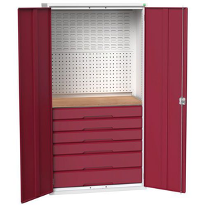 Werkplaatsladekast Bott middelhoog, Max. belasting: 1000 kg, Totale hoogte: 2000 mm, Aantal laden: 6, Totale breedte: 1050 mm, Aantal legborden: 1, Totale diepte: 550 mm, Frame kleur: Lichtgrijs, Hoogte lade: 4x 125mm ; 2x 175mm, Kleur deur: Rood, Lade kleur: Rood, Max. belasting per legbord: 75 kg, Max. belasting per lade: 75 kg, Gewicht: 153.85 kg, RAL: 3004 7035, Materiaal: Staal, Recyclebare verpakking: Ja - 100%, Gerecyclede verpakkingen: 93 %, Kleur: Rood Lichtgrijs