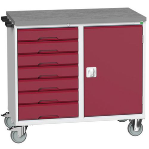 Verrijdbare Combikast Verso, Totale hoogte: 980 mm, Aantal laden: 7, Totale breedte: 1050 mm, Totale diepte: 600 mm, Kleur: Rood, Deurhoogte: 725 mm, Totale hoogte lade: 6 x 100 ; 1 x 125 mm, Kleur ombouw: Lichtgrijs, Max. belasting per lade: 50 kg, Max. belasting: 300 kg, Aantal deuren: 1, RAL: 3004, Zwenkwiel Ø: 125 mm, Max. belasting per legbord: 75 kg, Special Covid-19: nee, Aantal legborden: 1, Aantal zwenkwielen: 4, Recyclebare verpakking: Ja - 100%, Gerecyclede verpakkingen: 93 %, Gewicht: 108.72 kg, Type nr.: 16927126.24, Lade kleur: Rood, Kleur deur: Rood