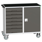 Verrijdbare Combikast Verso, Totale hoogte: 965 mm, Aantal laden: 7, Totale breedte: 1050 mm, Totale diepte: 550 mm, Kleur: Antraciet, Deurhoogte: 675 mm, Totale hoogte lade: 6 x 100 ; 1 x 125 mm, Kleur ombouw: Lichtgrijs, Max. belasting per lade: 50 kg, Max. belasting: 300 kg, Aantal deuren: 1, RAL: 7016, Zwenkwiel Ø: 125 mm, Max. belasting per legbord: 75 kg, Special Covid-19: nee, Aantal legborden: 1, Aantal zwenkwielen: 4, Recyclebare verpakking: Ja - 100%, Gerecyclede verpakkingen: 93 %, Gewicht: 98.88 kg, Type nr.: 16927128.19, Lade kleur: Antraciet, Kleur deur: Antraciet