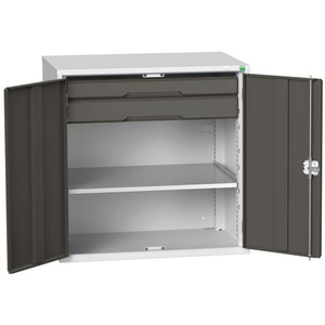Draaideurkast met lade en legbord 1300x550x2000 mm, Max. belasting: 1000 kg, Totale hoogte: 2000 mm, Totale breedte: 1300 mm, Aantal legborden: 4, Totale diepte: 550 mm, Frame kleur: Lichtgrijs, Kleur deur: Antraciet, Gewicht: 103.44 kg, Max. belasting per legbord: 75 kg, Aantal laden: 0, Kleur: Antraciet Lichtgrijs, RAL: 7016 7035, Recyclebare verpakking: Ja - 100%, Gerecyclede verpakkingen: 93 %, Deurmateriaal: Staal, Frame materiaal: Staal, Deur RAL: 7016