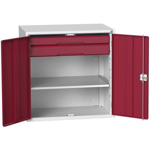 Draaideurkast met lade en legbord 1300x550x2000 mm, Max. belasting: 1000 kg, Totale hoogte: 2000 mm, Totale breedte: 1300 mm, Aantal legborden: 4, Totale diepte: 550 mm, Frame kleur: Lichtgrijs, Kleur deur: Rood, Gewicht: 103.44 kg, Max. belasting per legbord: 75 kg, Aantal laden: 0, Kleur: Rood Lichtgrijs, RAL: 3004 7035, Recyclebare verpakking: Ja - 100%, Gerecyclede verpakkingen: 93 %, Deurmateriaal: Staal, Frame materiaal: Staal, Deur RAL: 3004