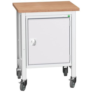 Verrijdbare werktafel met ladeblok Verso, Totale hoogte: 930 mm, Aantal laden: 0, Totale breedte: 700 mm, Totale diepte: 600 mm, Kleur: Lichtgrijs, Deurhoogte: 400 mm, Dikte tafelblad: 30 mm, Kleur ombouw: Lichtgrijs, Max. belasting: 300 kg, Aantal deuren: 1, RAL: 7035, Zwenkwiel Ø: 100 mm, Max. belasting per legbord: 75 kg, Special Covid-19: nee, Aantal legborden: 1, Aantal zwenkwielen: 4, Recyclebare verpakking: Ja - 100%, Gerecyclede verpakkingen: 93 %, Werkbank blad materiaal: Beuk multiplex, Gewicht: 52 kg, Type nr.: 16922202.16, Kleur deur: Lichtgrijs