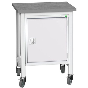 Verrijdbare werktafel met ladeblok Verso, Totale hoogte: 930 mm, Aantal laden: 0, Totale breedte: 700 mm, Totale diepte: 600 mm, Kleur: Lichtgrijs, Deurhoogte: 400 mm, Dikte tafelblad: 30 mm, Kleur ombouw: Lichtgrijs, Max. belasting: 300 kg, Aantal deuren: 1, RAL: 7035, Zwenkwiel Ø: 100 mm, Max. belasting per legbord: 75 kg, Special Covid-19: nee, Aantal legborden: 1, Aantal zwenkwielen: 4, Recyclebare verpakking: Ja - 100%, Gerecyclede verpakkingen: 93 %, Werkbank blad materiaal: Linoleum, Gewicht: 50 kg, Type nr.: 16922203.16, Kleur deur: Lichtgrijs