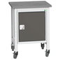 Verrijdbare werktafel met ladeblok Verso, Totale hoogte: 930 mm, Aantal laden: 0, Totale breedte: 700 mm, Totale diepte: 600 mm, Kleur: Antraciet, Deurhoogte: 400 mm, Dikte tafelblad: 30 mm, Kleur ombouw: Lichtgrijs, Max. belasting: 300 kg, Aantal deuren: 1, RAL: 7016, Zwenkwiel Ø: 100 mm, Max. belasting per legbord: 75 kg, Special Covid-19: nee, Aantal legborden: 1, Aantal zwenkwielen: 4, Recyclebare verpakking: Ja - 100%, Gerecyclede verpakkingen: 93 %, Werkbank blad materiaal: Linoleum, Gewicht: 50 kg, Type nr.: 16922203.19, Kleur deur: Antraciet